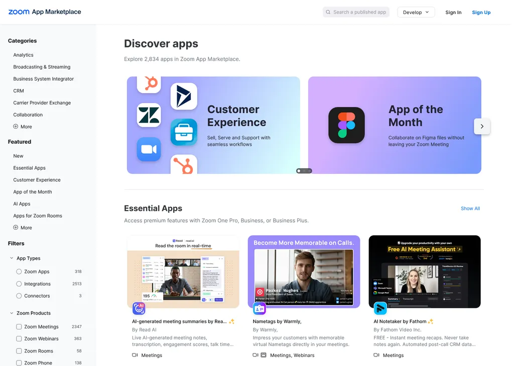 A video communications platform primarily known for video conferencing. Offers high-quality video meetings, webinars, conference rooms, and phone services. Features include screen sharing, recording, virtual backgrounds, breakout rooms, and chat. Provides end-to-end encryption, single sign-on, and various integration options. Scales from personal use to enterprise-level solutions with additional features like Zoom Rooms for conference spaces and Zoom Phone for cloud telephony.